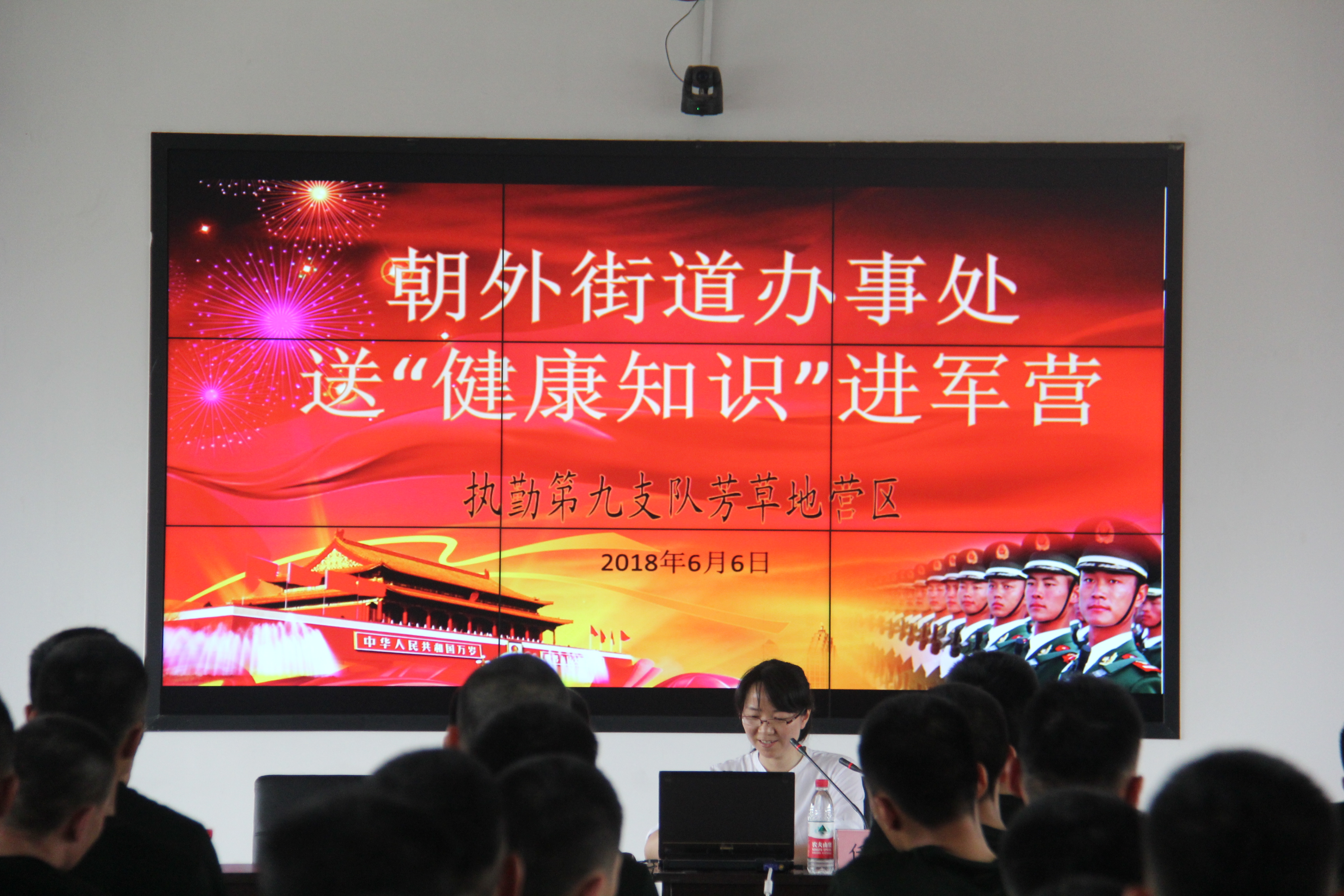 夏季来临,驻守在朝外街道地区的武警四大队依旧在炎热的天气中肩负着维护安全稳定的使命。尤其近几天更是持续高温,为有效增强一线官兵在夏季训练执勤中的防暑知识的自我防控,6月6日下午,朝外街道特邀请朝阳区服务中心的任慧丽医生一起走进了军营,开展了健康进军营卫生知识讲座。