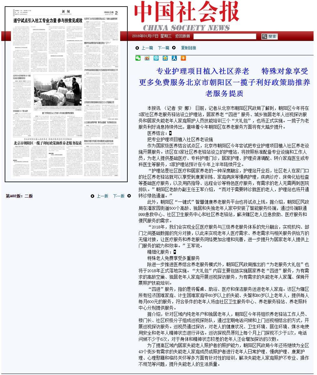 专业护理项目植入社区养老 特殊对象享受更多免费服务北京市朝阳区一揽子利好政策助推养老服务提质