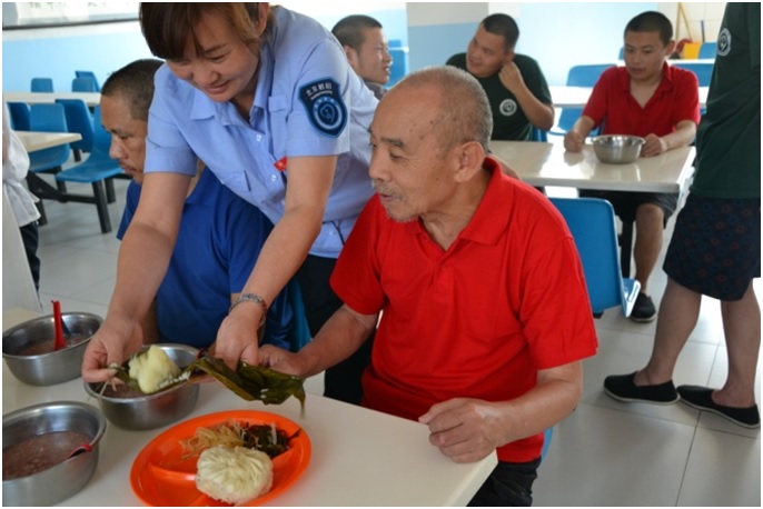 热气腾腾的爱心粽子出锅了!中午大家吃到了自己动手包的粽子,分外开心,由于这些受助人员大都有智力或精神方面的问题,不能用语言表达内心的谢意,但能从他们的表情中感觉到那份快乐。